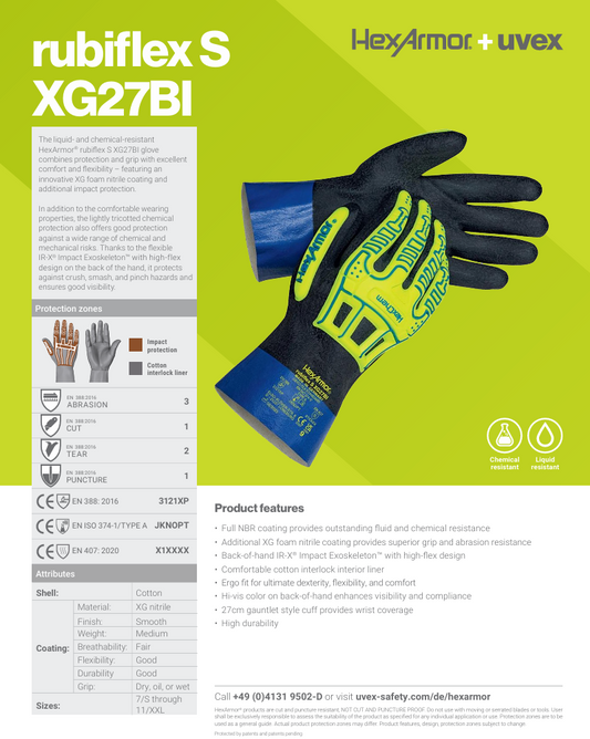 Nitriili- kemikaalisuojakäsine Uvex HexArmor® rubiflex S XG27BI