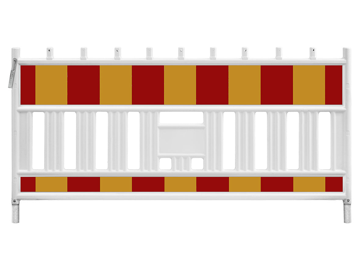 Työmaa-aita paketti = 40 metriä valkoista, muovista työmaa-aitaa, 10 kpl 25kg muovijalustoja sekä kuljetus/säilytysalusta